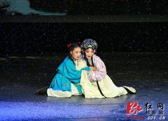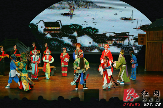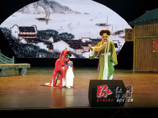 祁剧旧称祁阳班子,比京剧历史还悠久,是湖南传统地方戏曲中流行地域最广、历史最悠久的一个剧种。祁剧《金锁奇缘》讲述明朝忠良刘之章遭奸臣陷害,忍痛弃子“柳记铁铺”门前,写下血书留个金锁。铁匠之女柳明月情急下毅然将婴儿认作私生子予以保护,婚事遭毁,老父不明真相被气死。从此柳明月在传统伦理的唾骂中含羞忍辱抚养弃儿柳宝。善与恶、真与伪的抗争,曲折离奇的故事情节,富有生活化的表演,深深地打动了每一位现场听众。