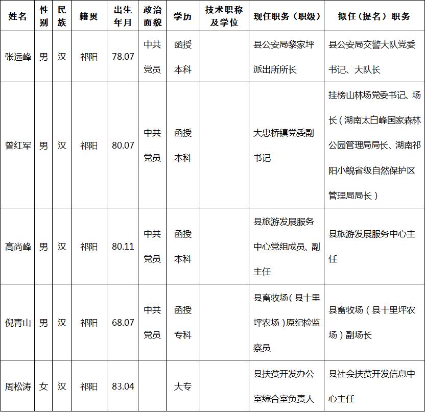 为加强对干部选拔工作的监督,提高识别和任用干部的准确程度,现对县委常委会议研究决定的下列5名拟任(提名)人选进行任前公示: